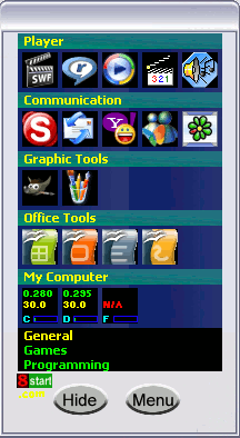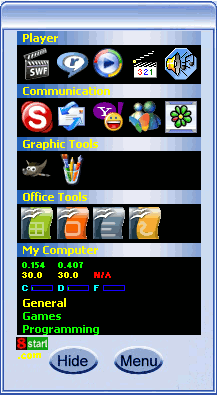 To All 8start Launcher users: (Skin suitable for 8start ver 1.0 only) If you like the skin made by Sandro (Thanks Sandro), click the link here to download it, you may unzip it and save to the folder where you install 8start Launcher, default folder is c:\program files\8start Launcher, restart 8start Launcer after you done, please backup all the jpg in this folder file before you overwrite it, just in case you want to use back my original design. :-)