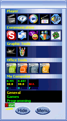 Great program. Reduces clutter on the ole Windows clutter-prone desktop. Great little program. I redid the edited skin that you posted on your site from an interested user and tweeked it a bit for my purposes. I kinda like it. I attached the files that were edited. It is cleaner for my desktop.